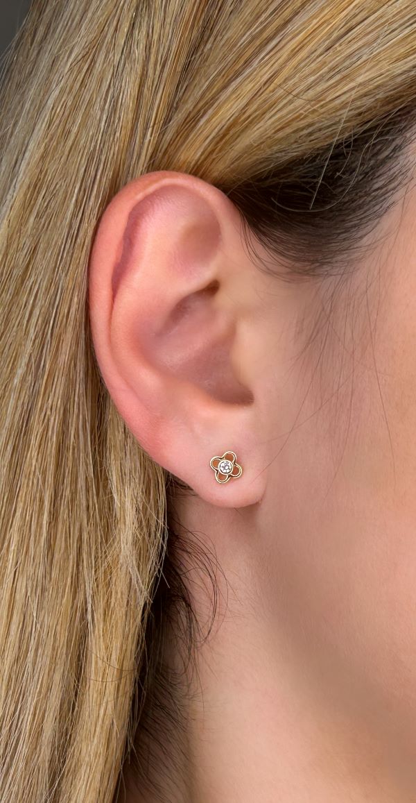 Be the first to review “0.07 Carat TW Diamond Flower Earring Studs in Yellow Gold”