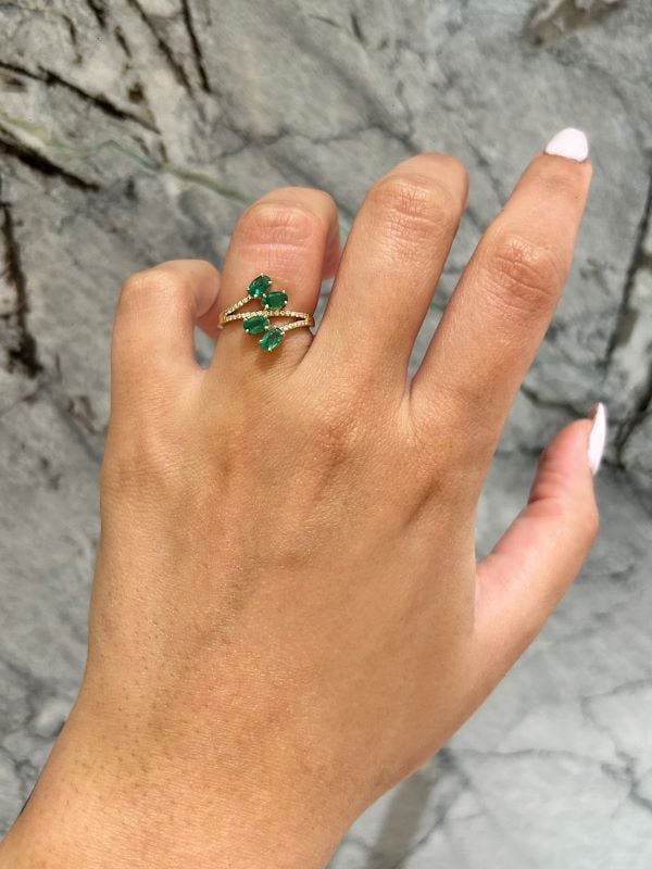 4 Stone Emerald Ring with Canadian Diamond Accents in Yellow Gold