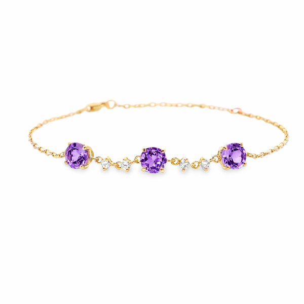 Amethyst and Canadian Diamond Dainty Bracelet in Yellow Gold