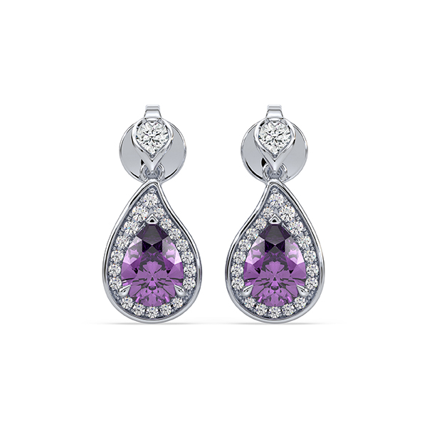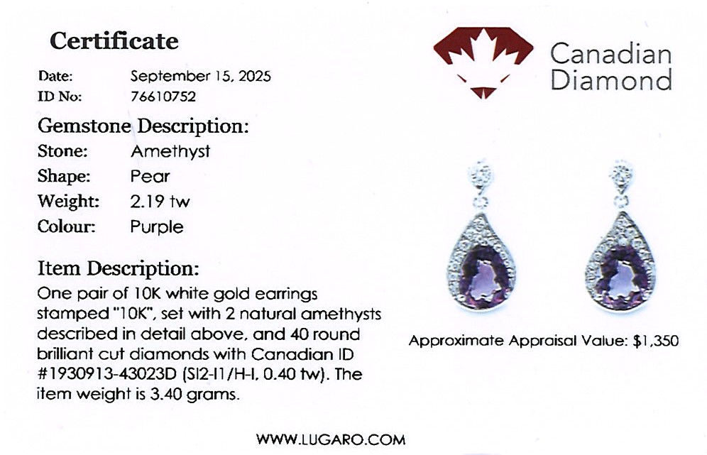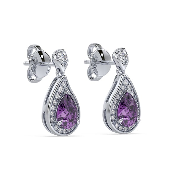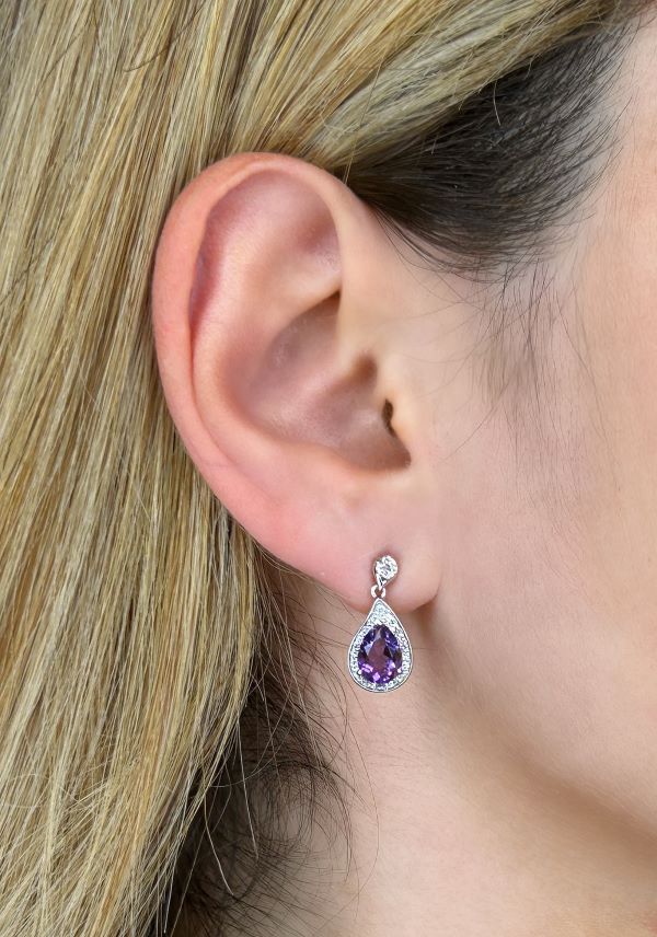 Be the first to review “Amethyst and Canadian Diamond Halo Drop Earrings in White Gold”