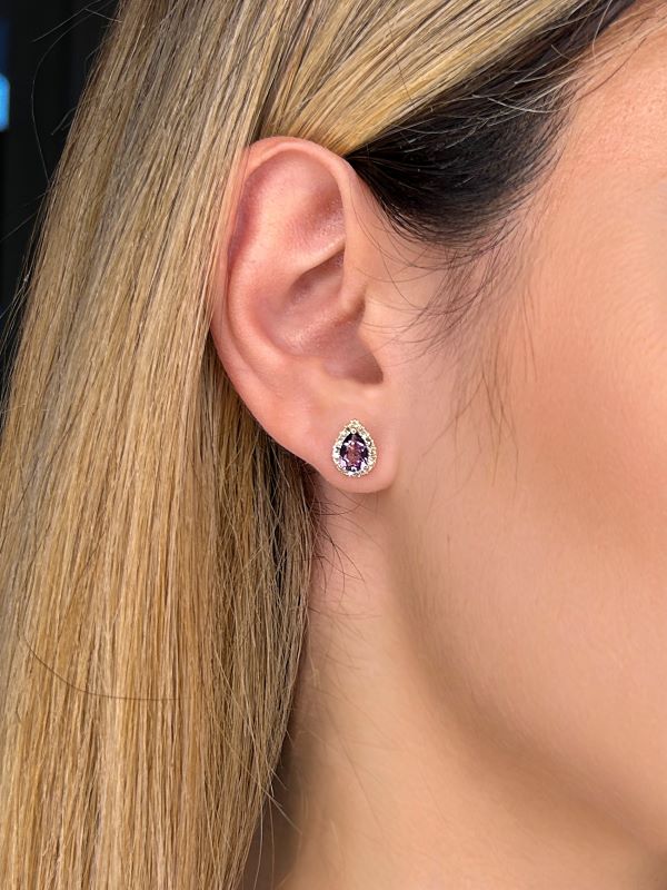 Be the first to review “Amethyst and Canadian Diamond Halo Stud Earrings in Yellow Gold”