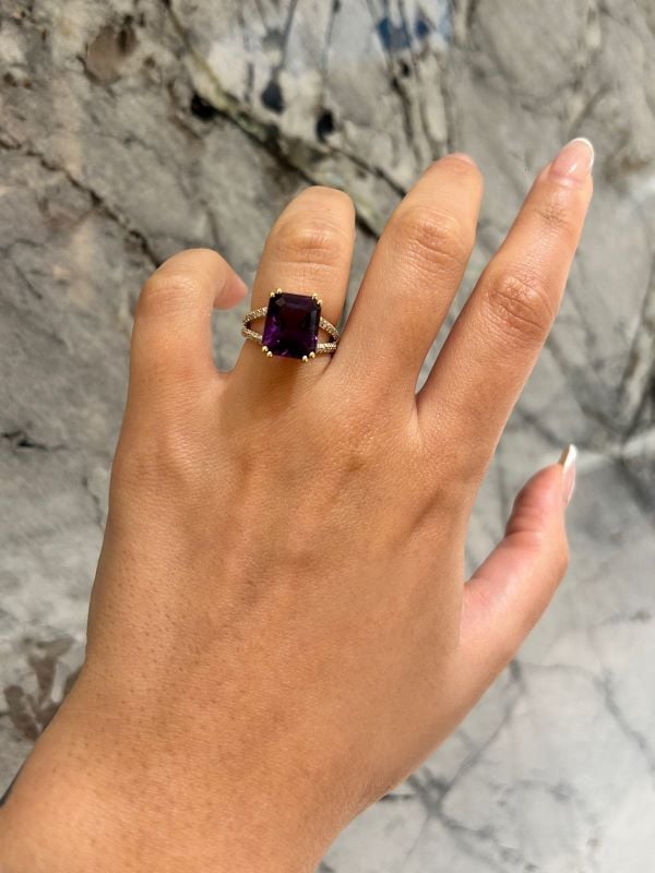 Amethyst and Canadian Diamond Spilt Shank Ring in Yellow Gold
