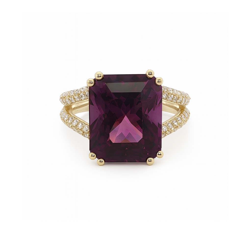 Be the first to review “Amethyst and Canadian Diamond Spilt Shank Ring in Yellow Gold”