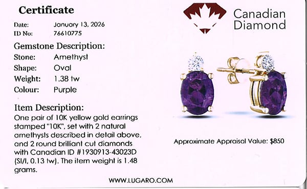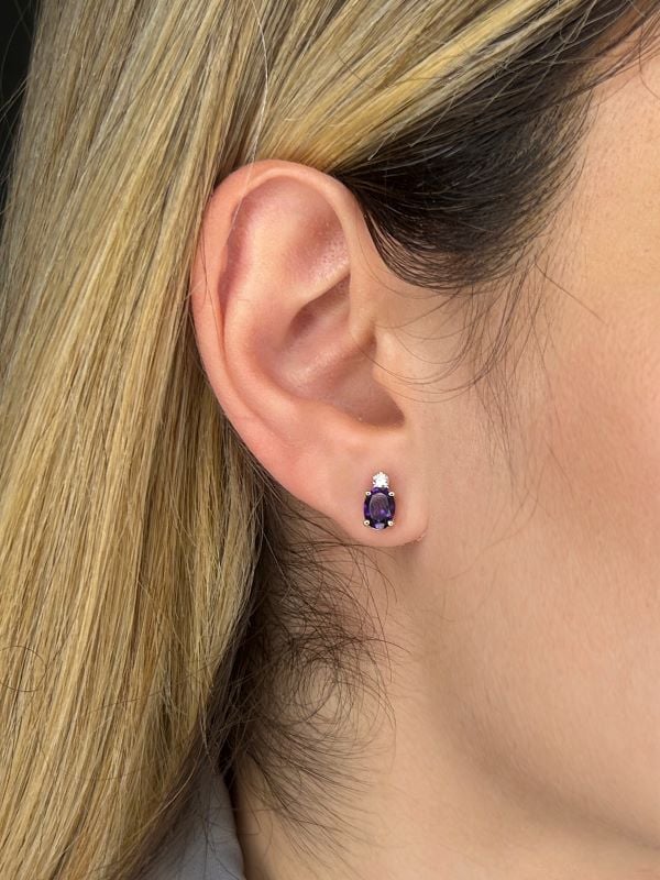 Be the first to review “Amethyst and Canadian Diamond Stud Earrings in Yellow Gold”