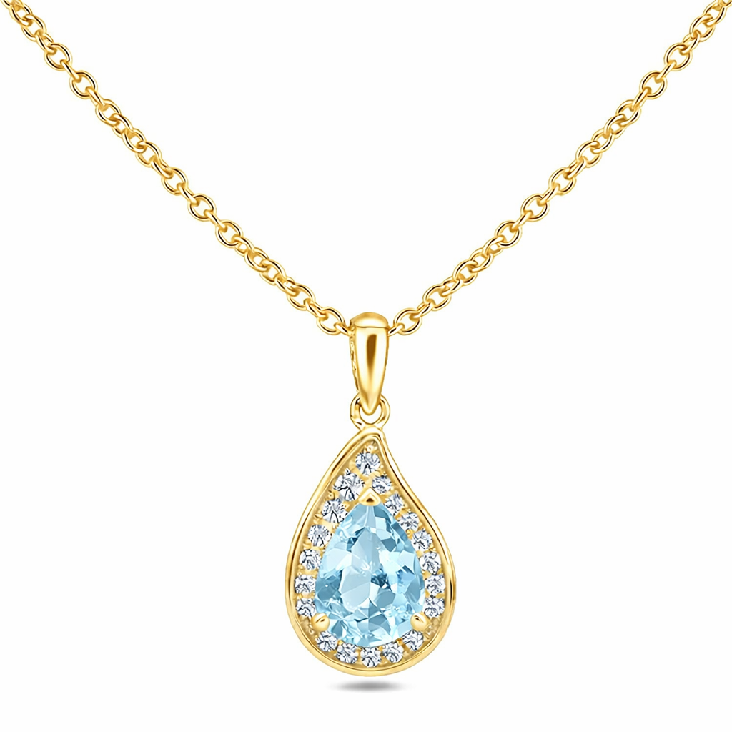 Aquamarine 0.82 Carat and Canadian Diamond Pear Shape Halo Pendant in Yellow Gold