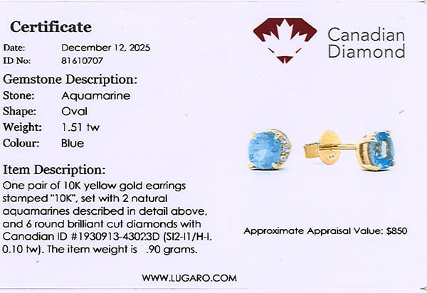 Be the first to review “Aquamarine and Canadian Diamond Half Halo Stud Earrings in Yellow Gold”