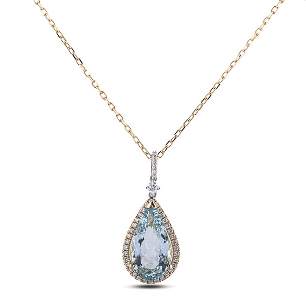 Be the first to review “Aquamarine and Canadian Diamond Halo Pendant in Yellow and White Gold”