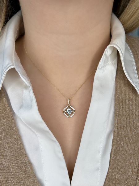 Be the first to review “Aquamarine and Canadian Diamond Halo Pendant in Yellow Gold”