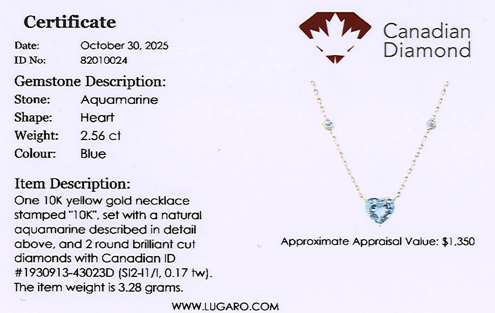 Necklace includes a Canadian diamond certificate.