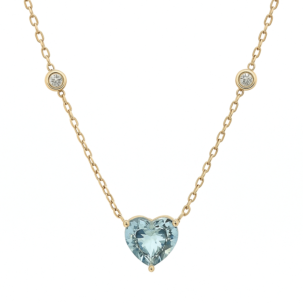 Be the first to review “Aquamarine and Canadian Diamond Necklace In Yellow Gold”