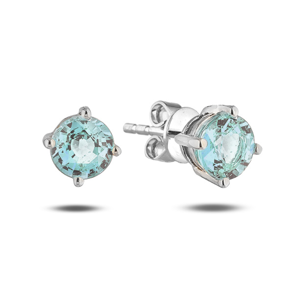 14K white gold stud earrings featuring 2.50 carat total weight aquamarine.