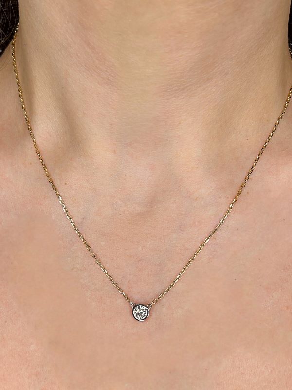 Be the first to review “Bezel Set De Beers Forevermark Diamond Solitaire Pendant in 18K Yellow and White Gold”