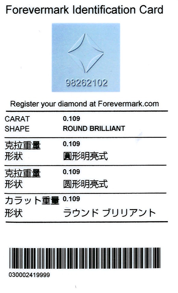 • Certificate: De Beers Forevermark