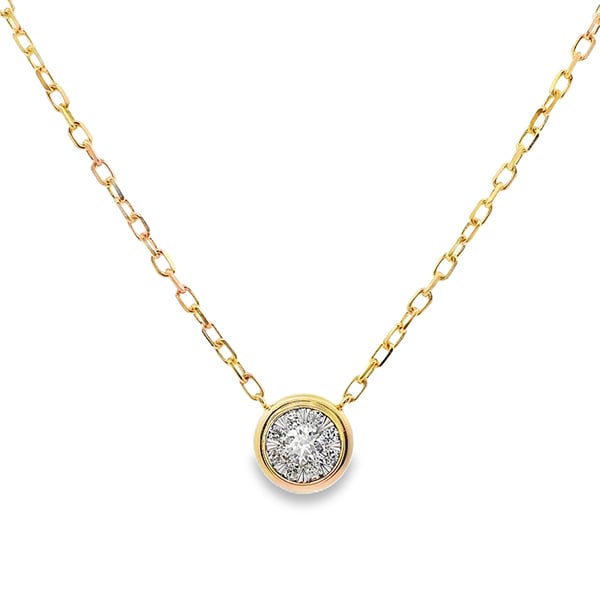 18K yellow and white gold necklace featuring 0.21 carat total weight De Beers Forevermark diamonds.