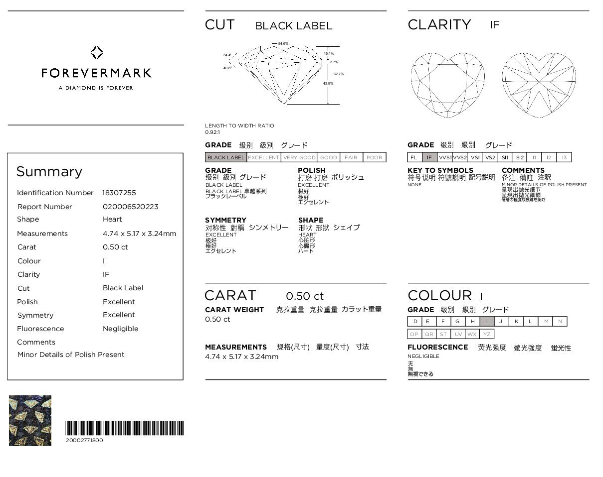 Stud earrings include 2x De Beers Forevermark diamond certificates.