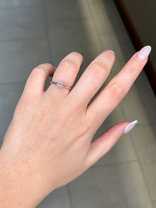 Diamond solitaire engagement ring includes a De Beers Forevermark diamond certificate.