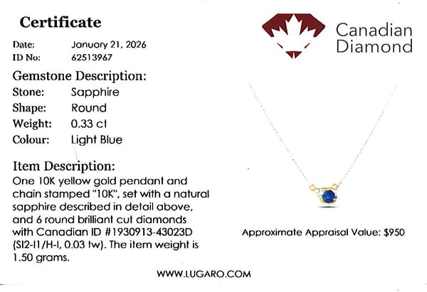 Pendant includes Canadian diamond certificate.