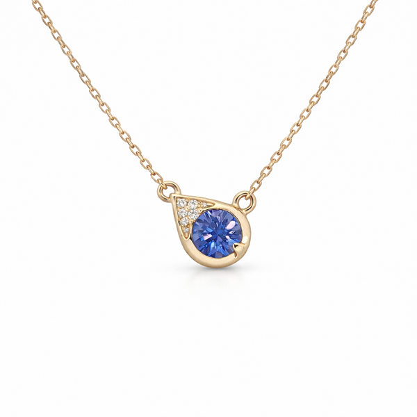 Be the first to review “Blue Sapphire and Canadian Diamond Pear Shaped Necklace In Yellow Gold”