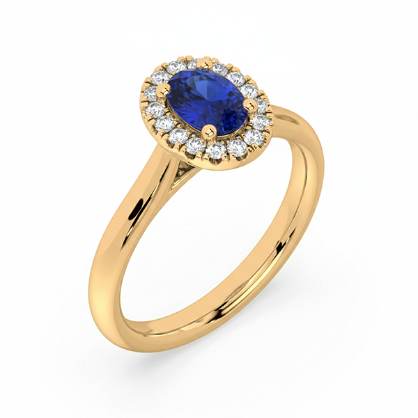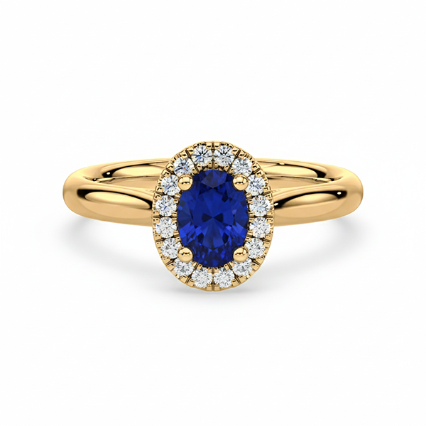 Blue Sapphire & Canadian Diamond Halo Ring in Yellow Gold