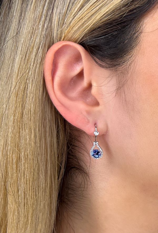 Sapphire and diamond dangle earrings include 2x De Beers Forevermark diamond certificates.