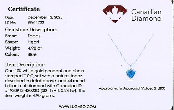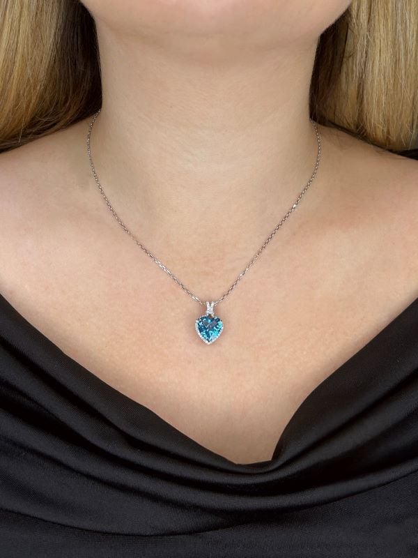 Be the first to review “Blue Topaz Heart Pendant with Canadian Diamond Halo In White Gold”