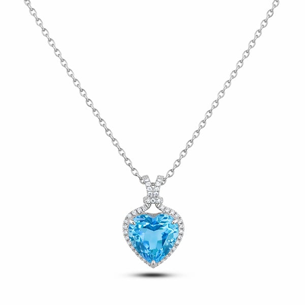 Blue Topaz Heart Pendant with Canadian Diamond Halo In White Gold