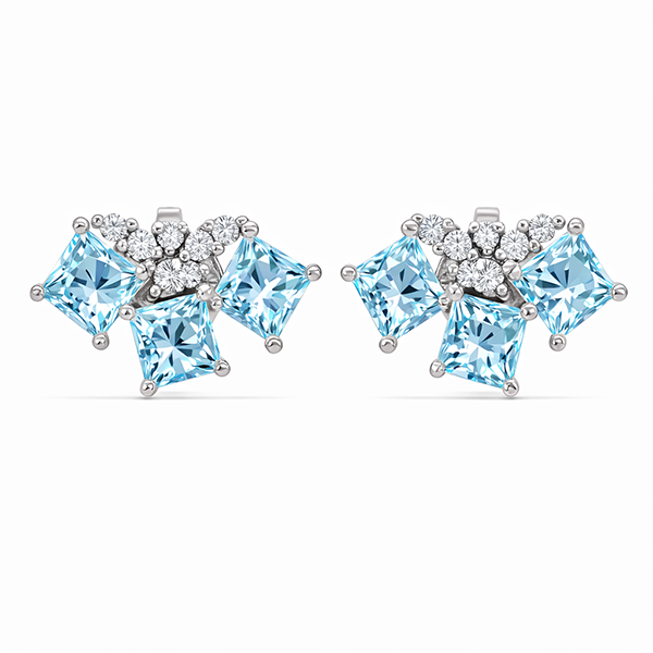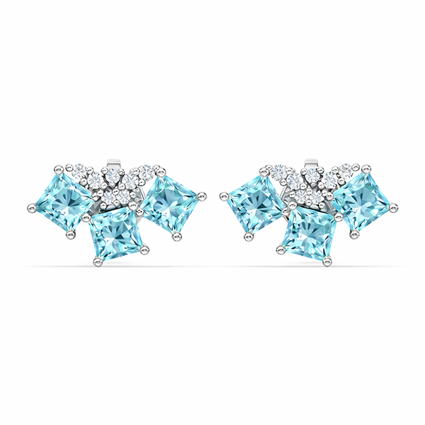Brazilian Origin Aquamarine and Canadian Diamond Art Deco Stud Earrings in White Gold