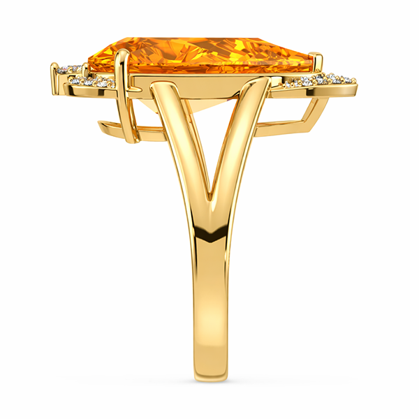10K yellow gold ring featuring a 4.93 carat citrine, accented by 0.12 carat total weight round brilliant cut melee Canadian diamonds.