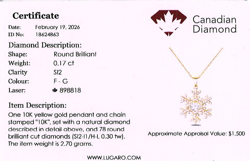 Be the first to review “Brilliant Canadian Diamond Snowflake Pendant in Yellow Gold”