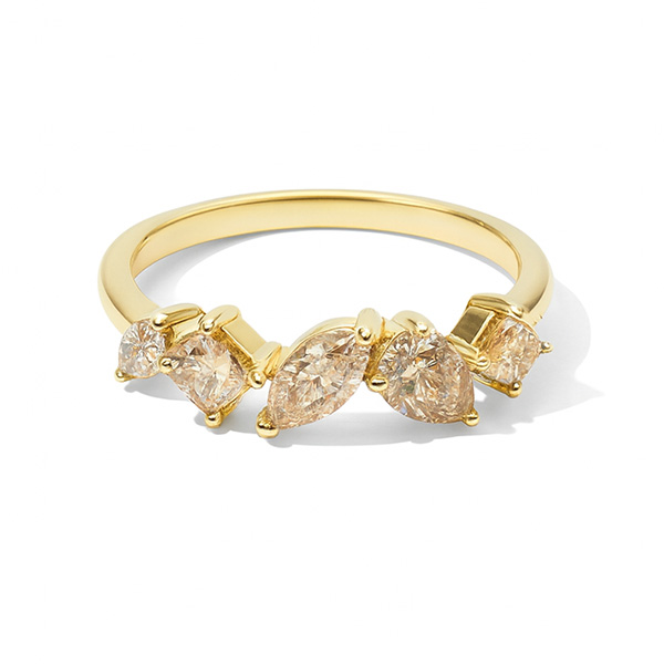 Canadian Coffee Diamond Mosaic Style 5 Stone Anniversary Ring in Yellow Gold