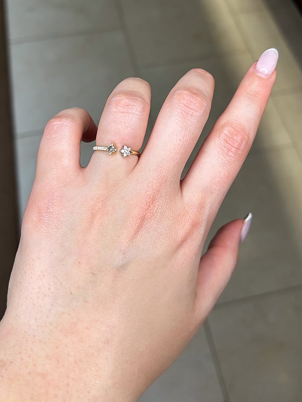 Canadian Desert Diamond Flower Enchanted Open Ring in Yellow and White Gold