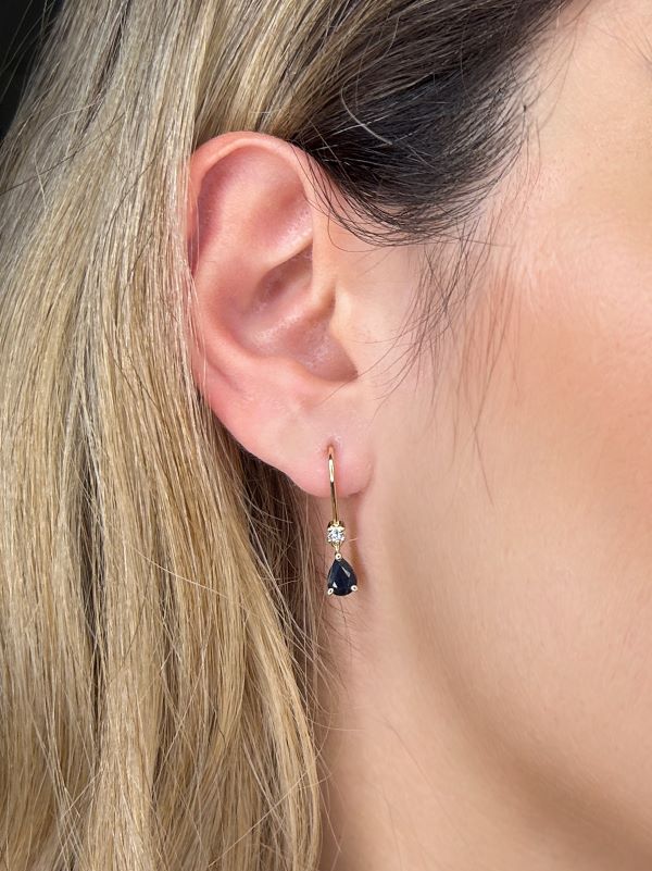Be the first to review “Canadian Diamond and Australian Origin Blue Sapphire Pear Shape Drop Earrings in Yellow Gold”
