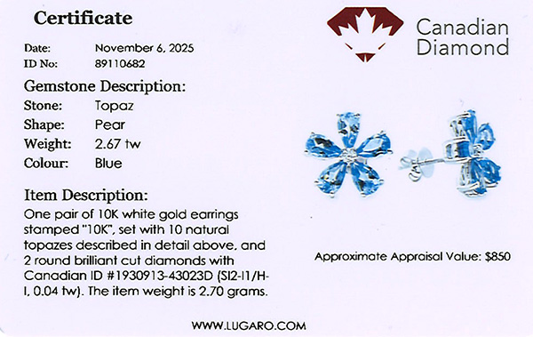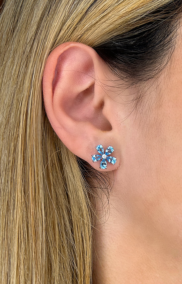 Be the first to review “Canadian Diamond and Blue Topaz Flower Earrings in White Gold”