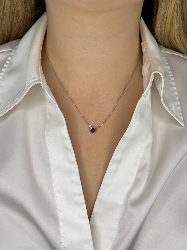 Be the first to review “Canadian Diamond and Cushion Shaped Blue Sapphire Necklace In Yellow and White Gold”