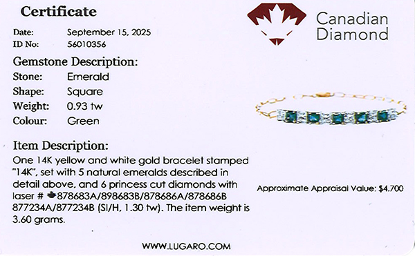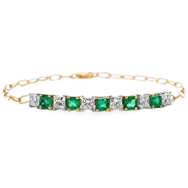 Canadian Diamond and Emerald Bracelet in 14K White and Yellow Gold