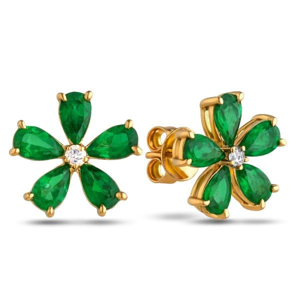 Be the first to review “Canadian Diamond and Emerald Flower Earrings in Yellow Gold”