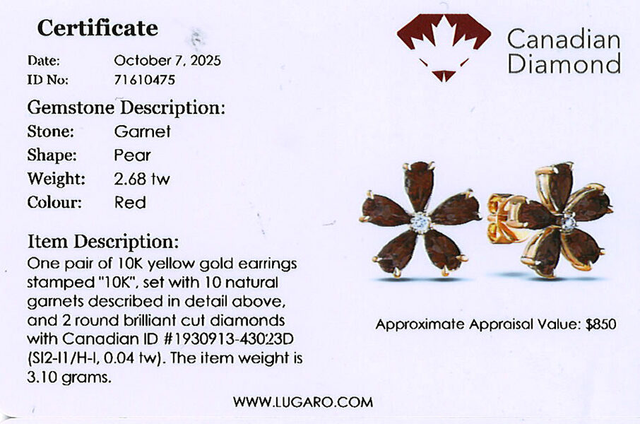 Earrings includes Canadian diamond certificate.
