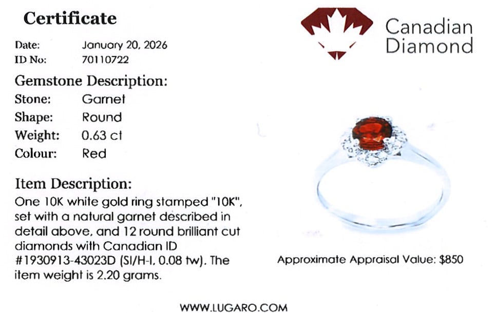 Ring also includes Canadian diamond certificate.