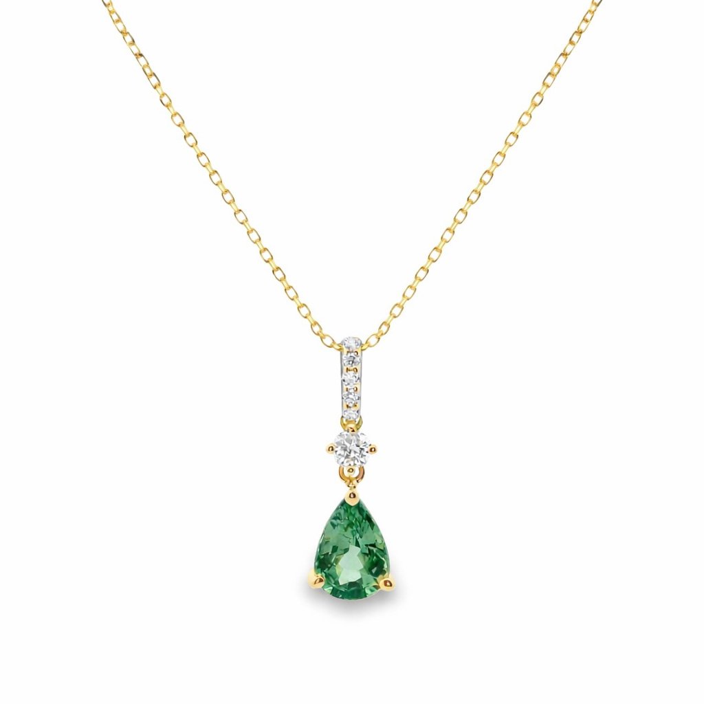 Be the first to review “Canadian Diamond and Pear Shaped Green Alexandrite Drop Pendant in Yellow Gold”