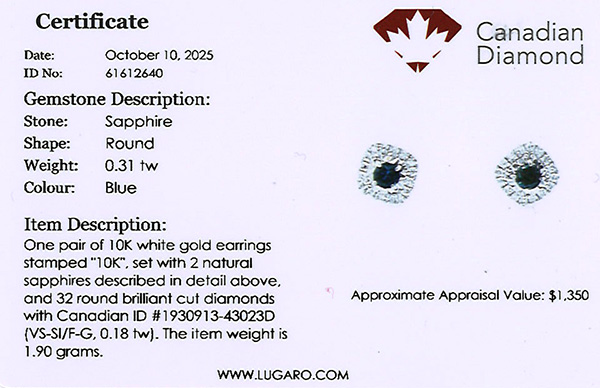 Be the first to review “Canadian Diamond and Sapphire Miracle Halo Stud Earrings in 18K White Gold”