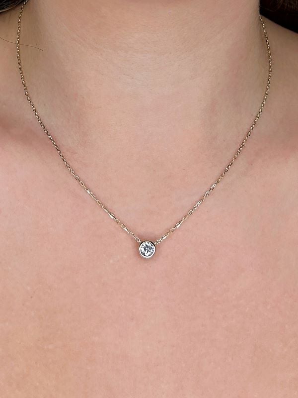 Canadian Diamond Bezel Set Necklace With Hidden Halo in Yellow Gold