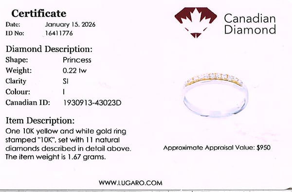 Ring includes Canadian diamond certificate.