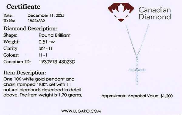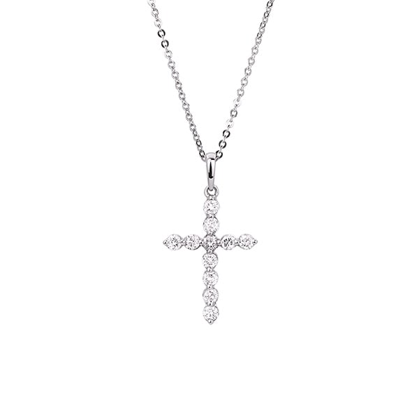 10K white gold Canadian diamond cross pendant featuring 0.51 carat total weight round brilliant cut Canadian diamonds.
