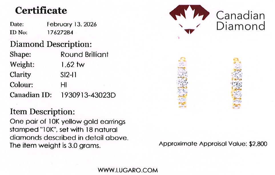 Be the first to review “Canadian Diamond Hoop Earrings in Yellow Gold | 1.62 Carat TW”