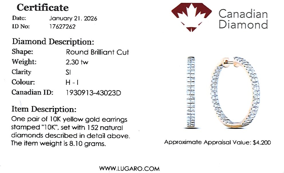 Be the first to review “Canadian Diamond In And Out Hoop Earrings in Yellow Gold 2.30 Carat TW”