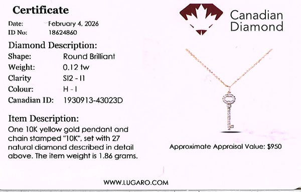 Be the first to review “Canadian Diamond Key Pendant in Yellow Gold 0.12 Carat TW”