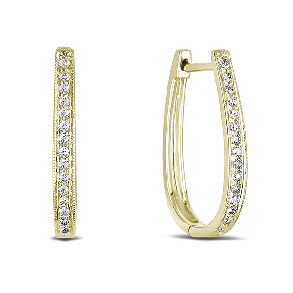 10K yellow gold milgrain Canadian diamond hoop earrings featuring 0.25 carat total weight round brilliant cut Canadian diamonds.