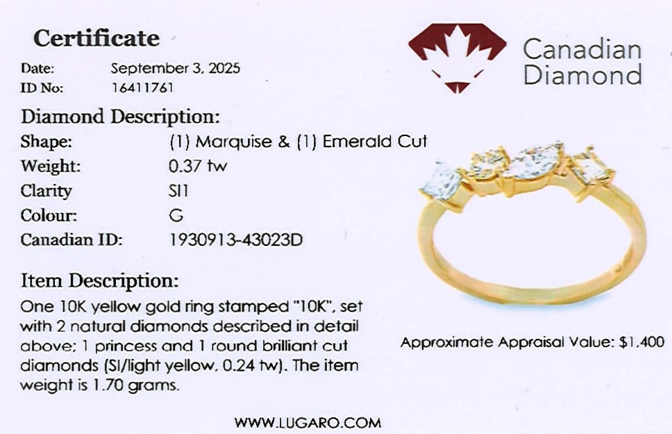 Diamond ring includes Canadian Diamond Certificate.