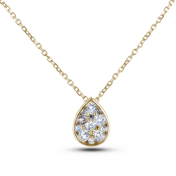 10K yellow gold pear shape diamond cluster pendant featuring 0.21 carat total weight diamonds.