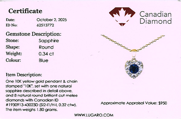 Be the first to review “Canadian Diamond & Sapphire Halo Heart Pendant in Yellow Gold”